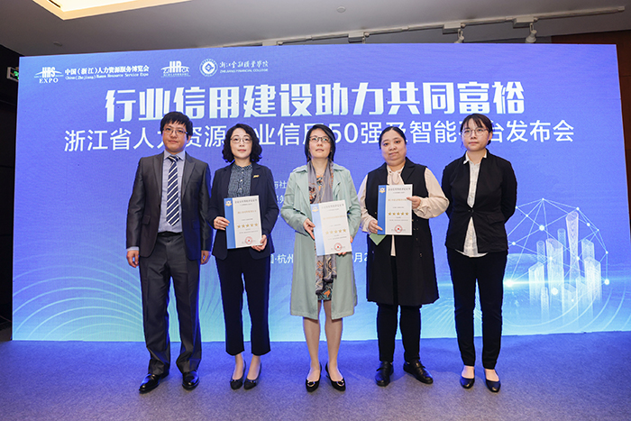 在此次博览会中,浙江省人力资源服务协会同时发布了“2021浙江省人力资源服务企业信用等级评定前50强排名”榜单。榜单根据《浙江省人力资源服务企业信用等级评价标准》,围绕基础条件、市场竞争力、交易诚信及社会性、经营管理和财务风险5个维度23项指标评出的综合得分进行排名得出。