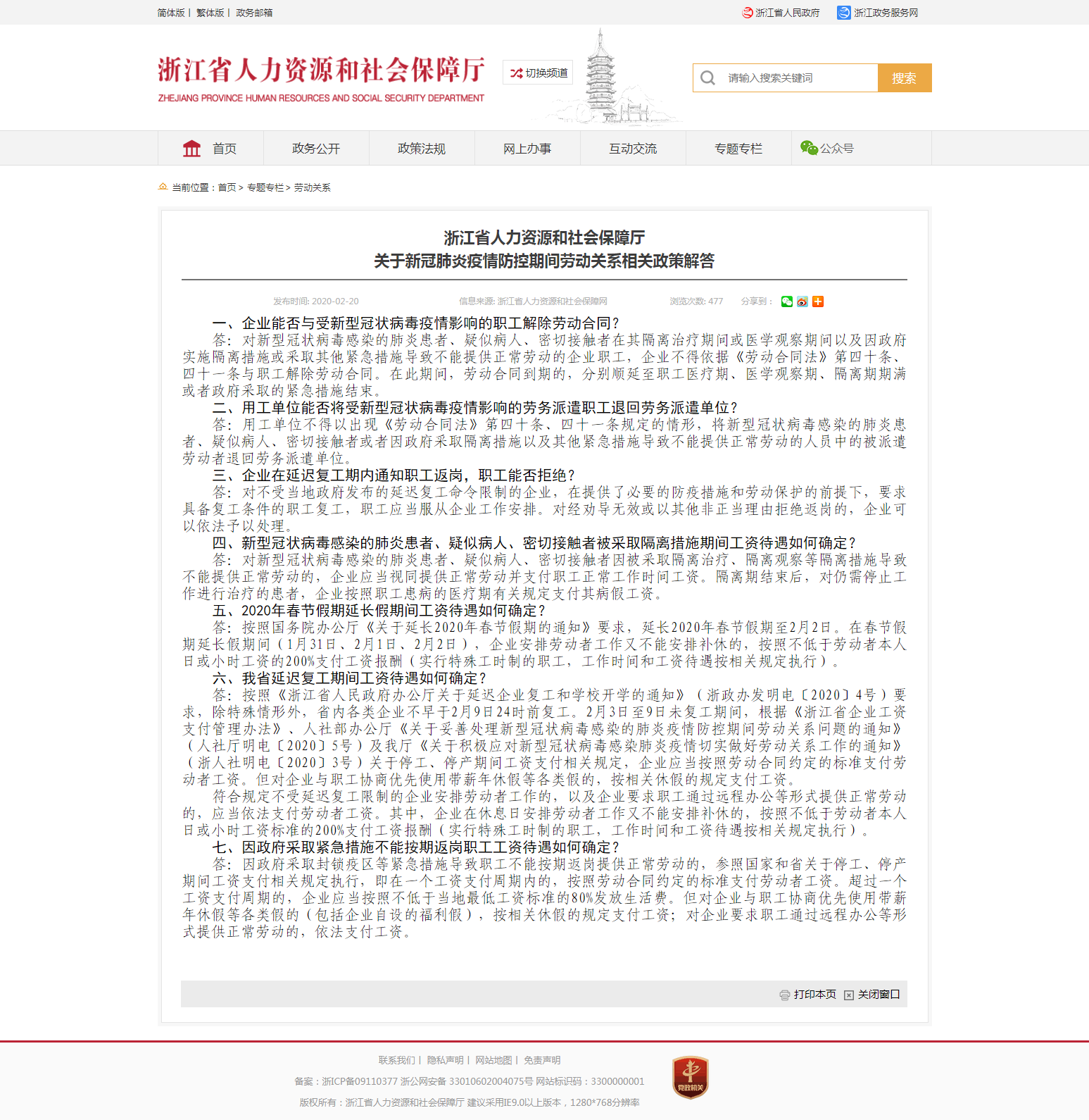 最近,针对企业职工关心的新冠肺炎疫情防控期间的劳动关系问题,省人力资源和社会保障厅作了权威解答。