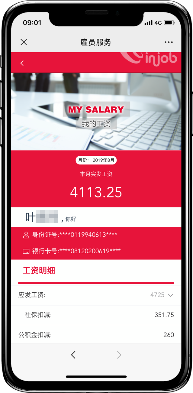 ① 在首页选择点击【我的工资】进入工资页面,查看相关信息;