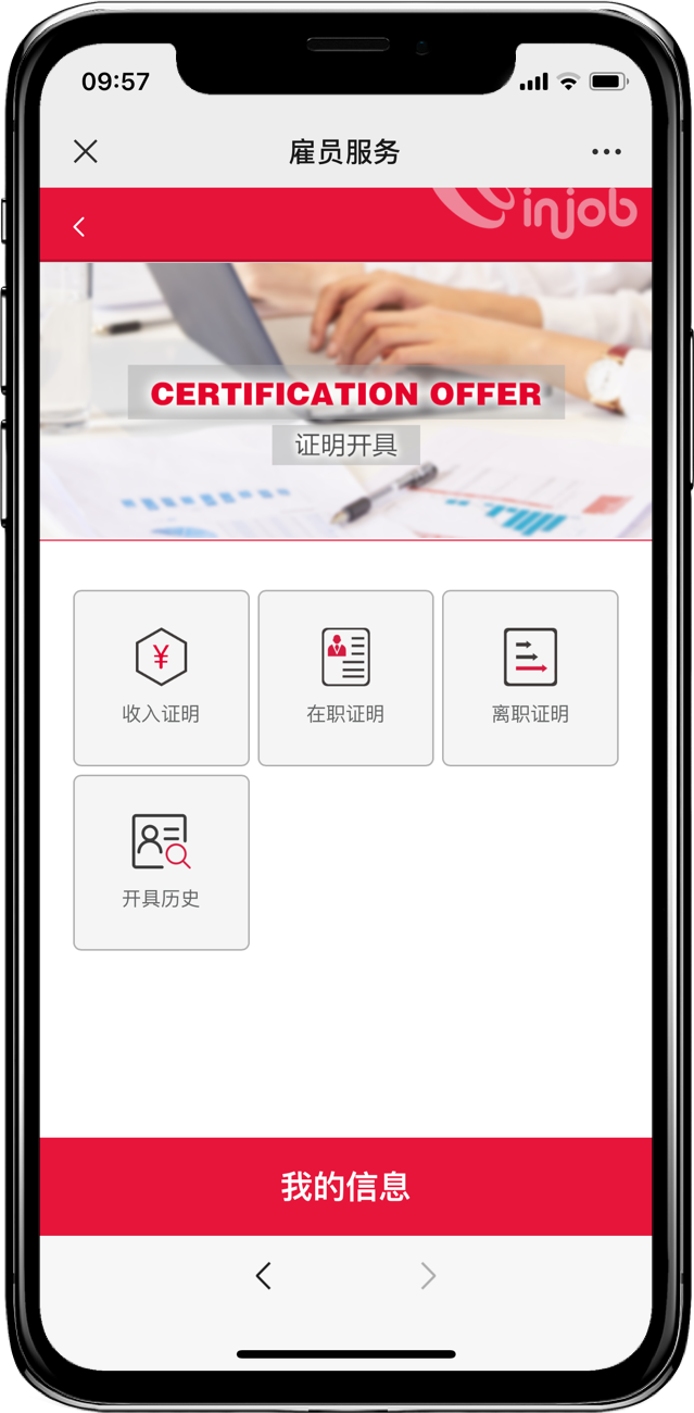 在首页选择点击【证明开具】进入证明开具页面,选择您要开具的证明类型;