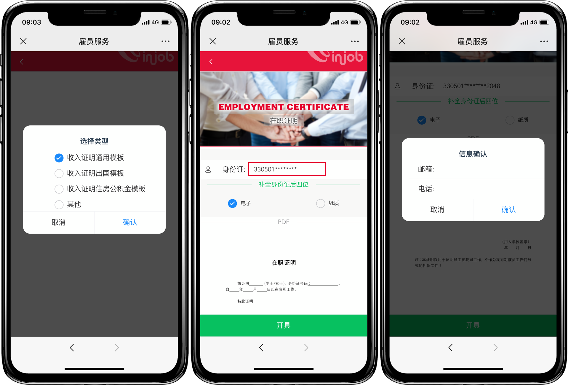 ④ 选择电子版,您只要输入手机号码和选填收件邮箱;如果选择纸质版证明,您还需要填写收件地址。